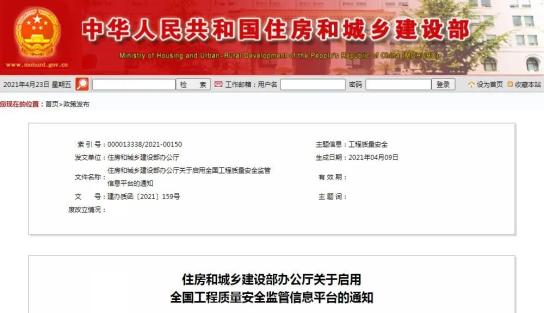 近日,住房和城鄉(xiāng)建設(shè)部辦公廳發(fā)布通知,為全面推行“互聯(lián)網(wǎng)+監(jiān)管”模式,住房和城鄉(xiāng)建設(shè)部組織開發(fā)了全國工程質(zhì)量安全監(jiān)管信息平臺(tái)(以下簡稱平臺(tái)),并定于2021年5月15日正式啟用。據(jù)悉,平臺(tái)集成工程質(zhì)量安全監(jiān)管業(yè)務(wù)信息系統(tǒng)、全國工程質(zhì)量安全監(jiān)管數(shù)據(jù)中心、工作門戶以及公共服務(wù)門戶,供各地免費(fèi)使用。