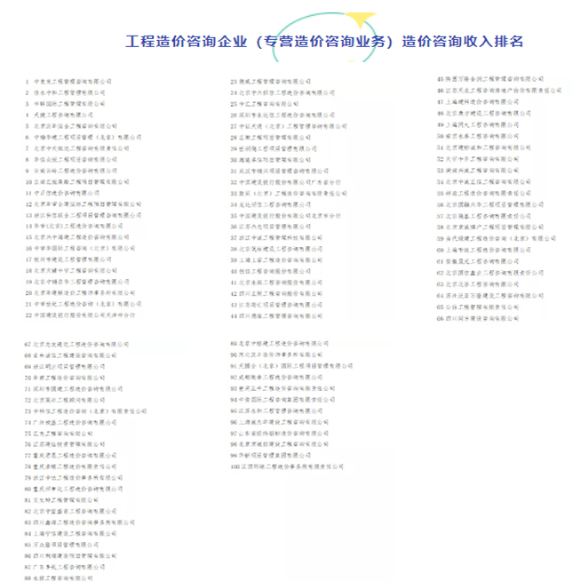 近日,中國建設(shè)工程造價(jià)管理協(xié)會(huì)公示《2020年工程造價(jià)咨詢企業(yè)造價(jià)咨詢收入排名》。