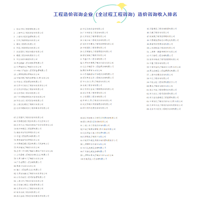 河南華威公司位列2020工程造價(jià)咨詢企業(yè)造價(jià)咨詢收入第17名!連續(xù)兩年入圍全國百強(qiáng)排名前20名。